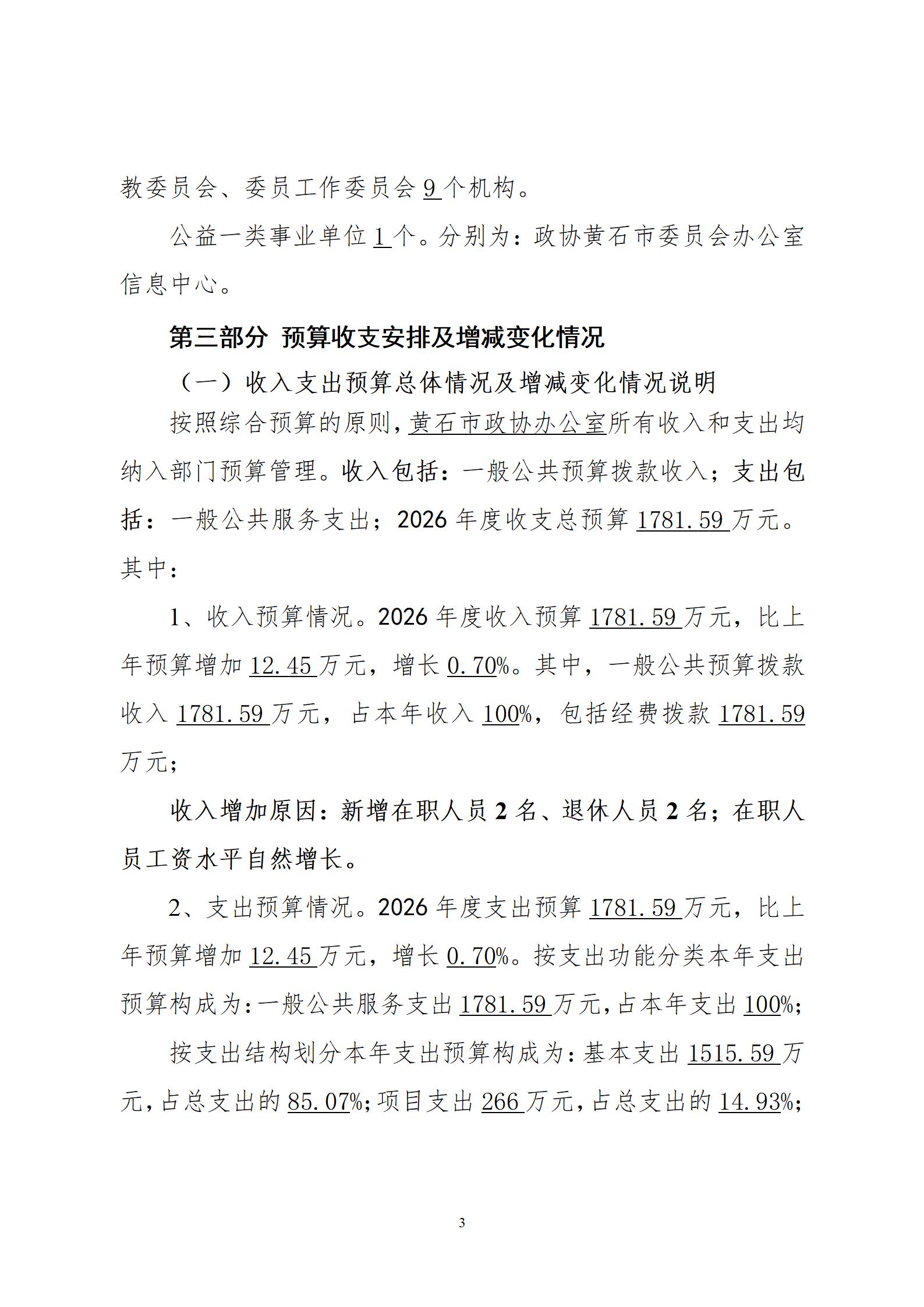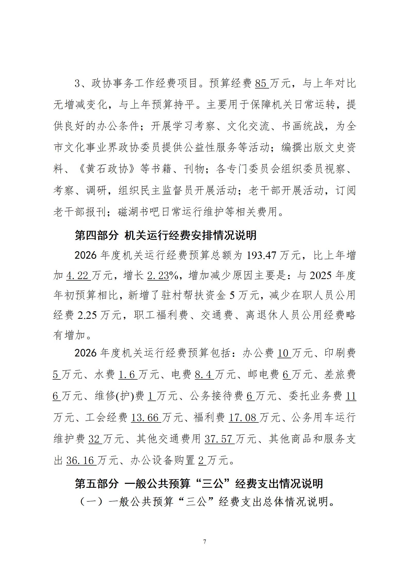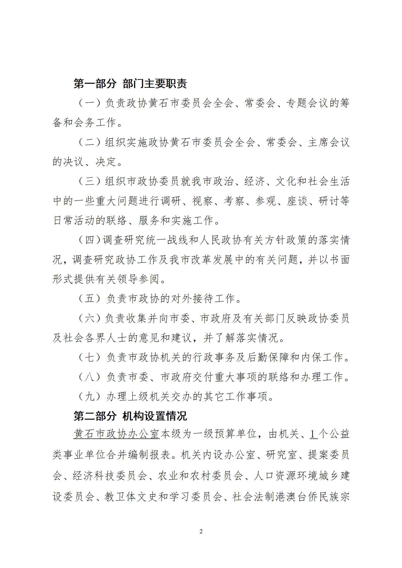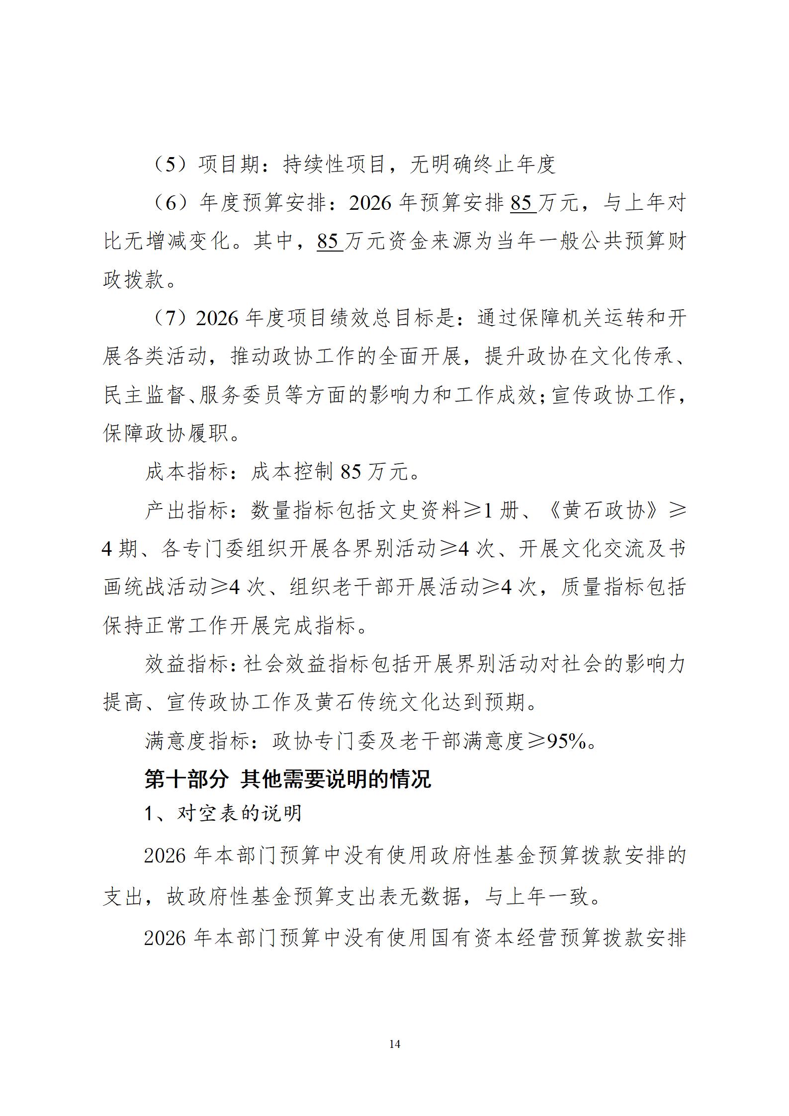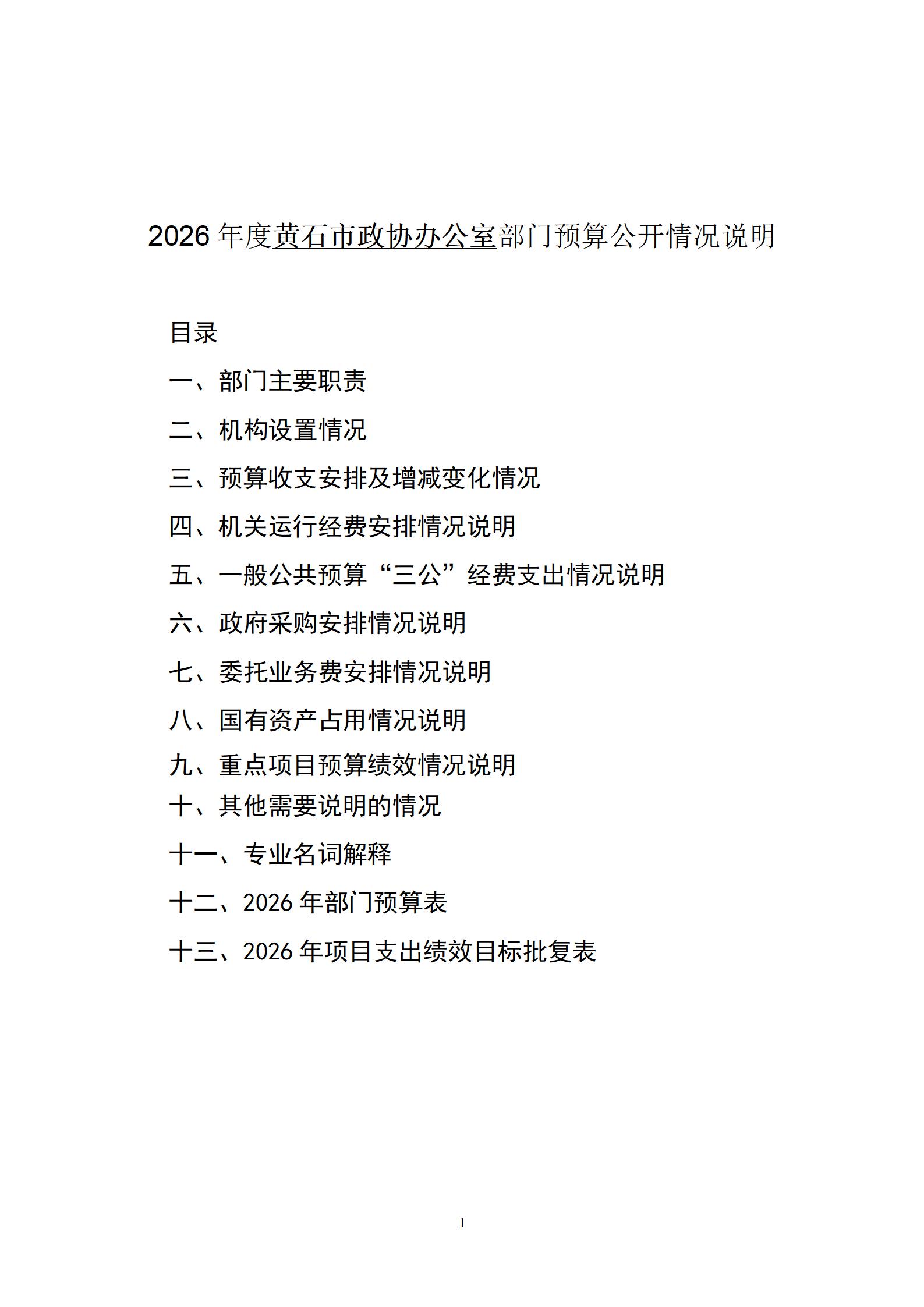 2026年度黄石市政协办公室部门预算公开情况说明