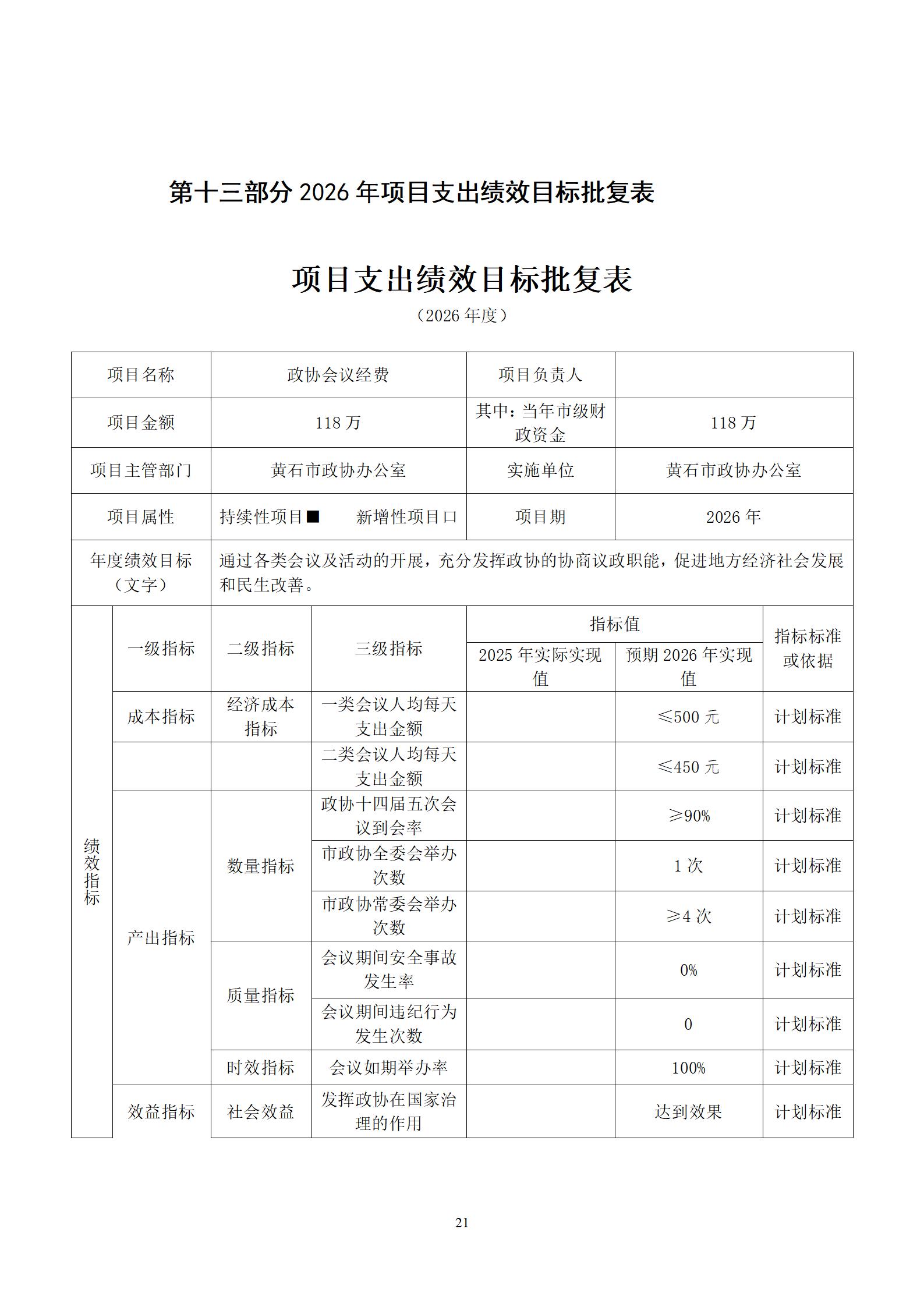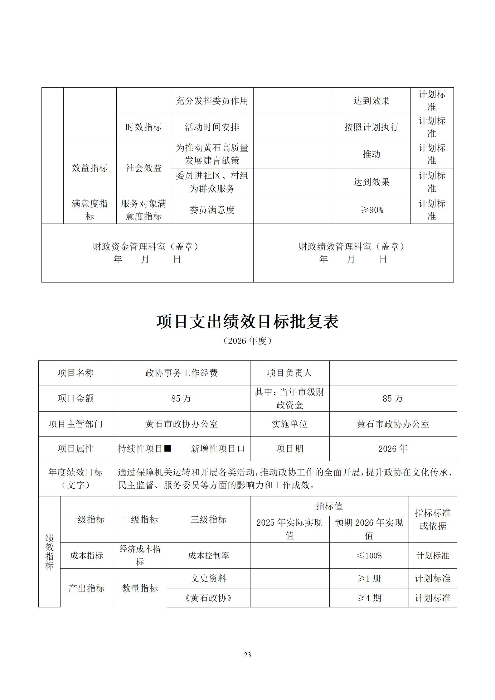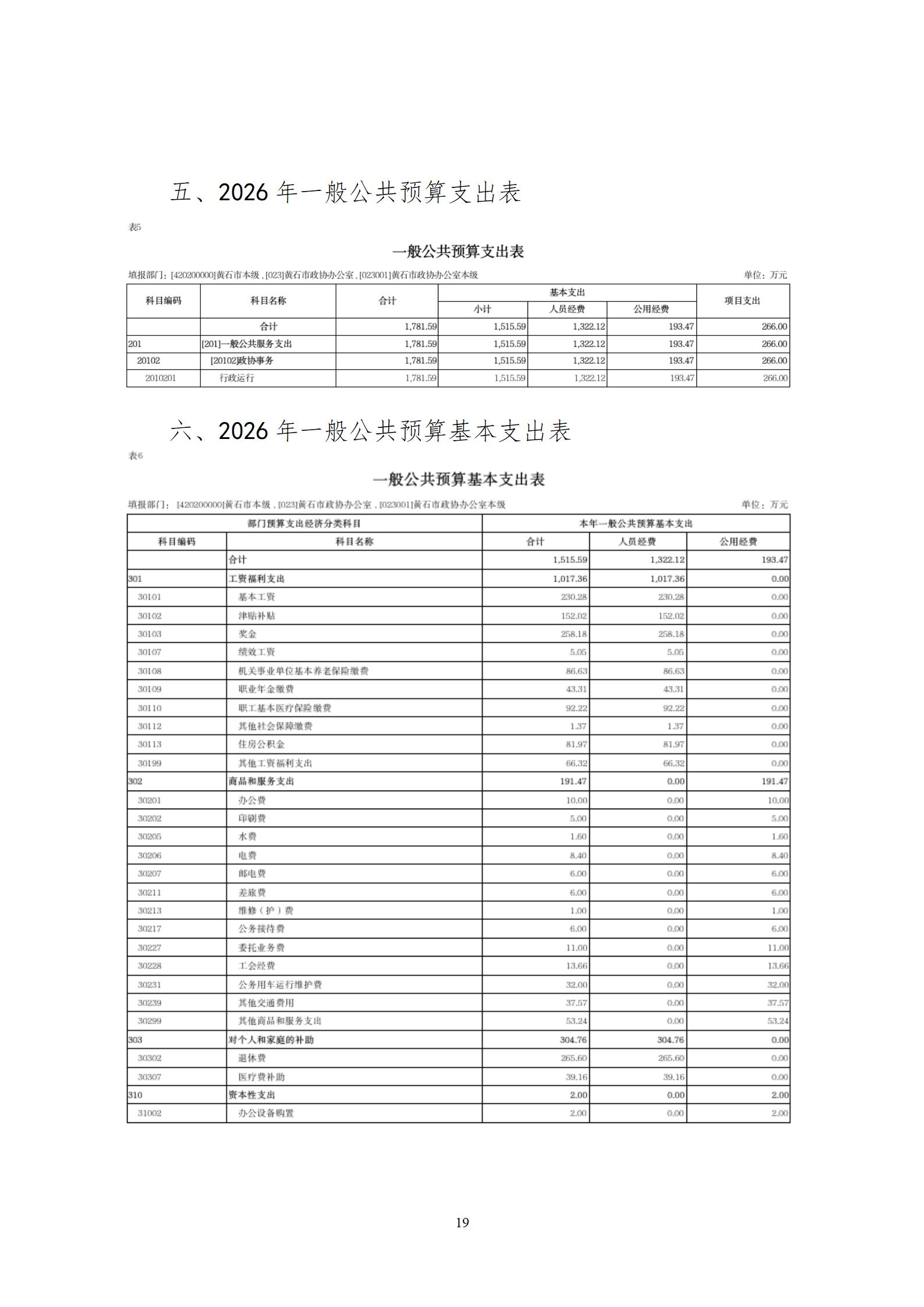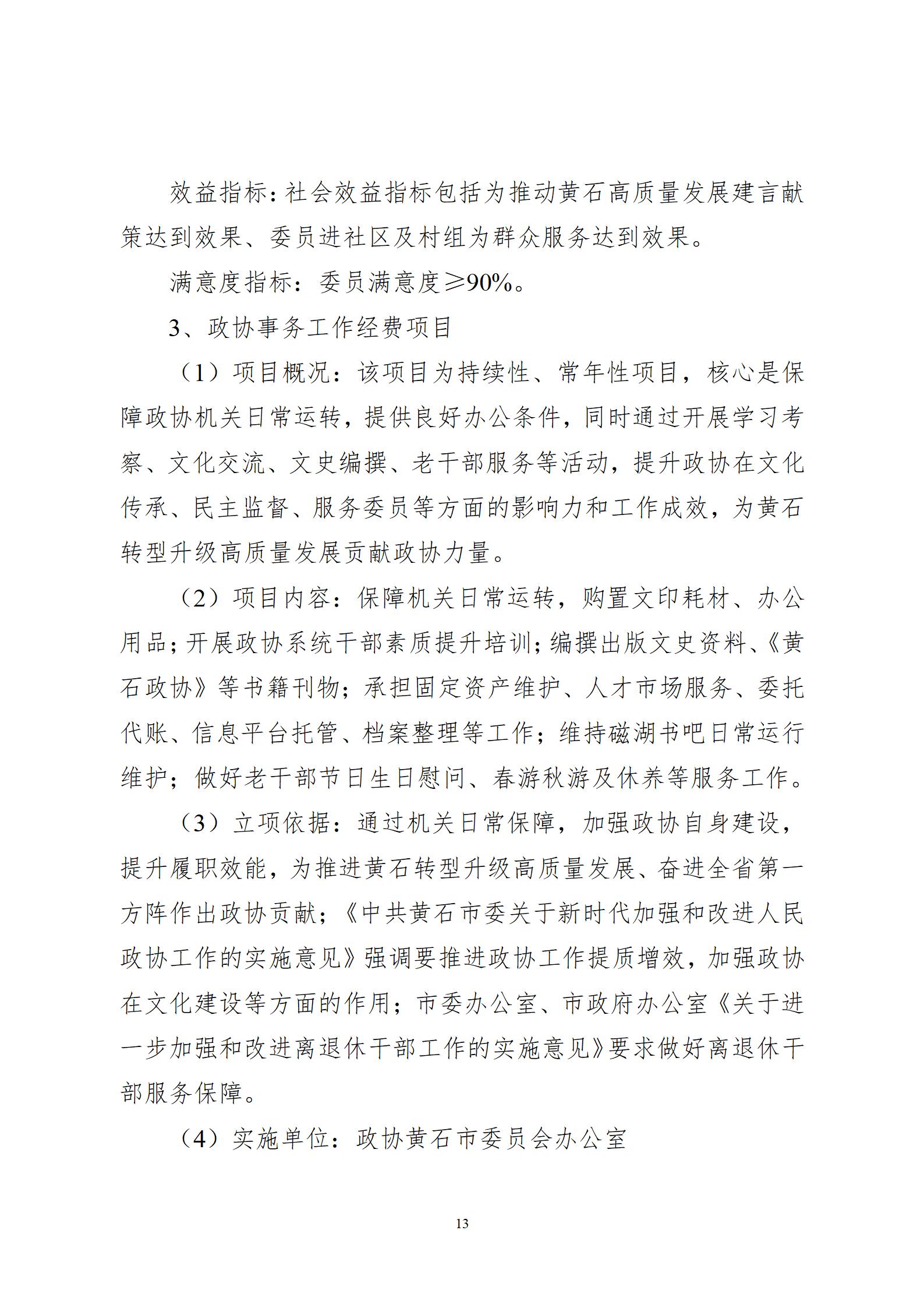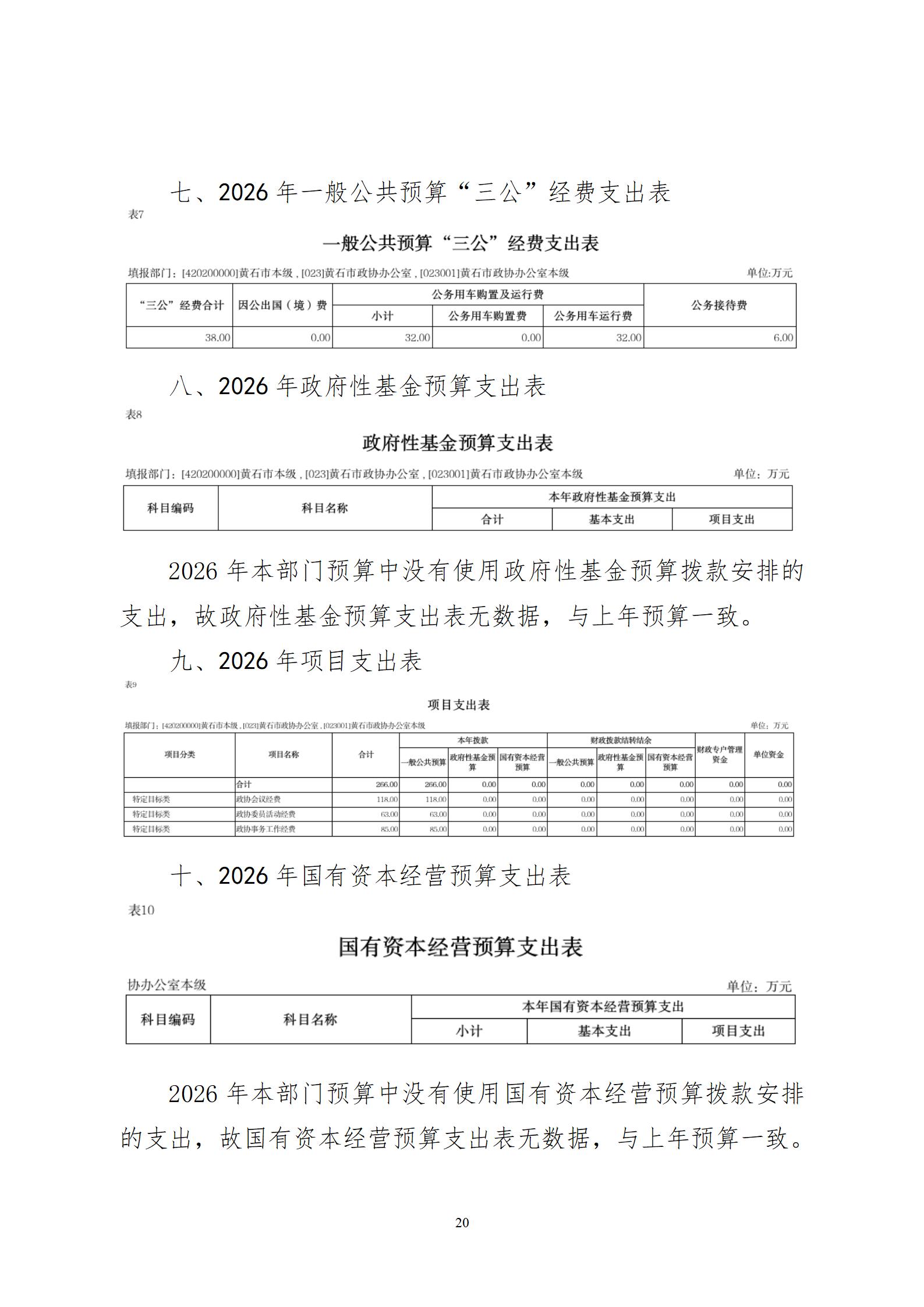 2026年度黄石市政协办公室部门预算公开情况说明