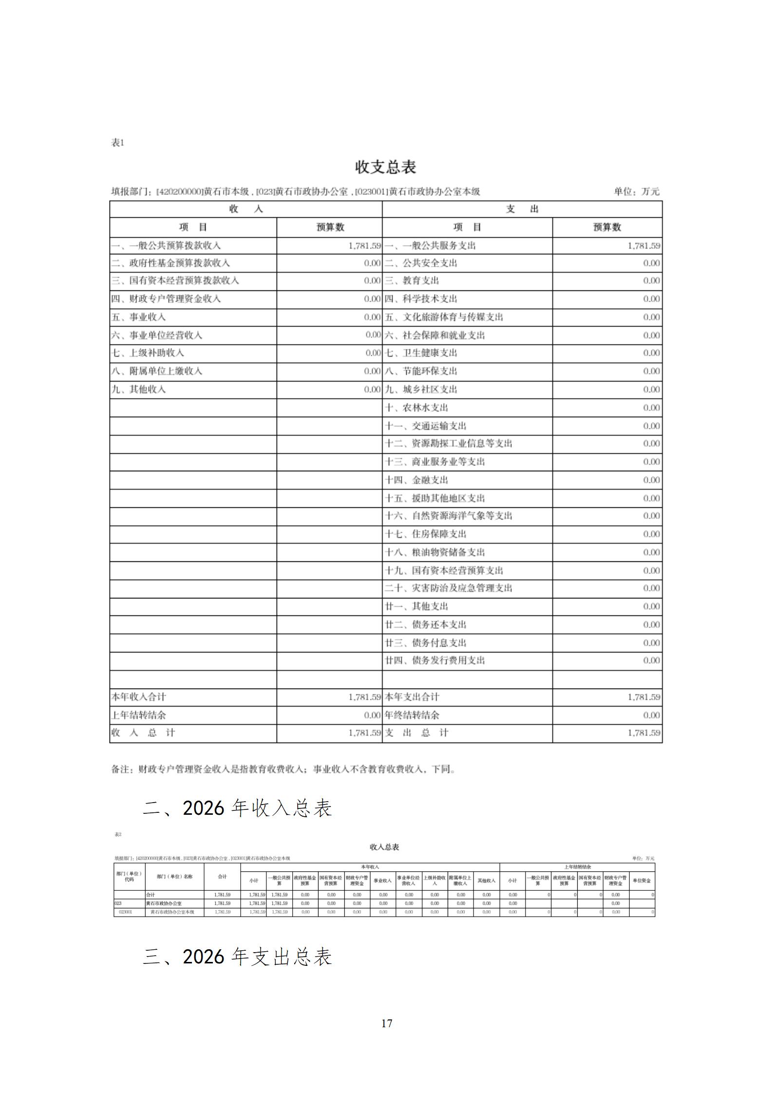 公开2:黄石市部门预算公开报表(2026).xls