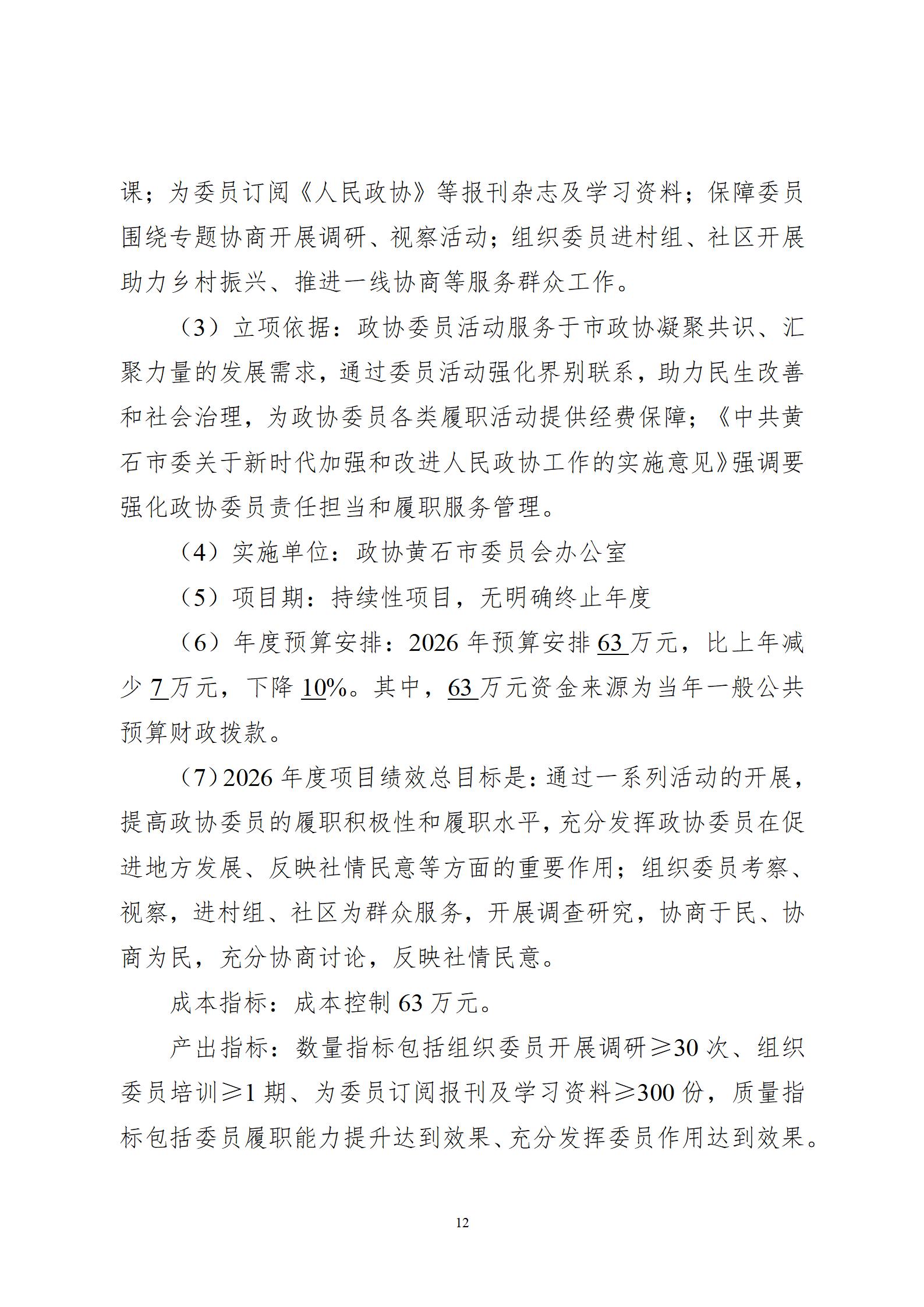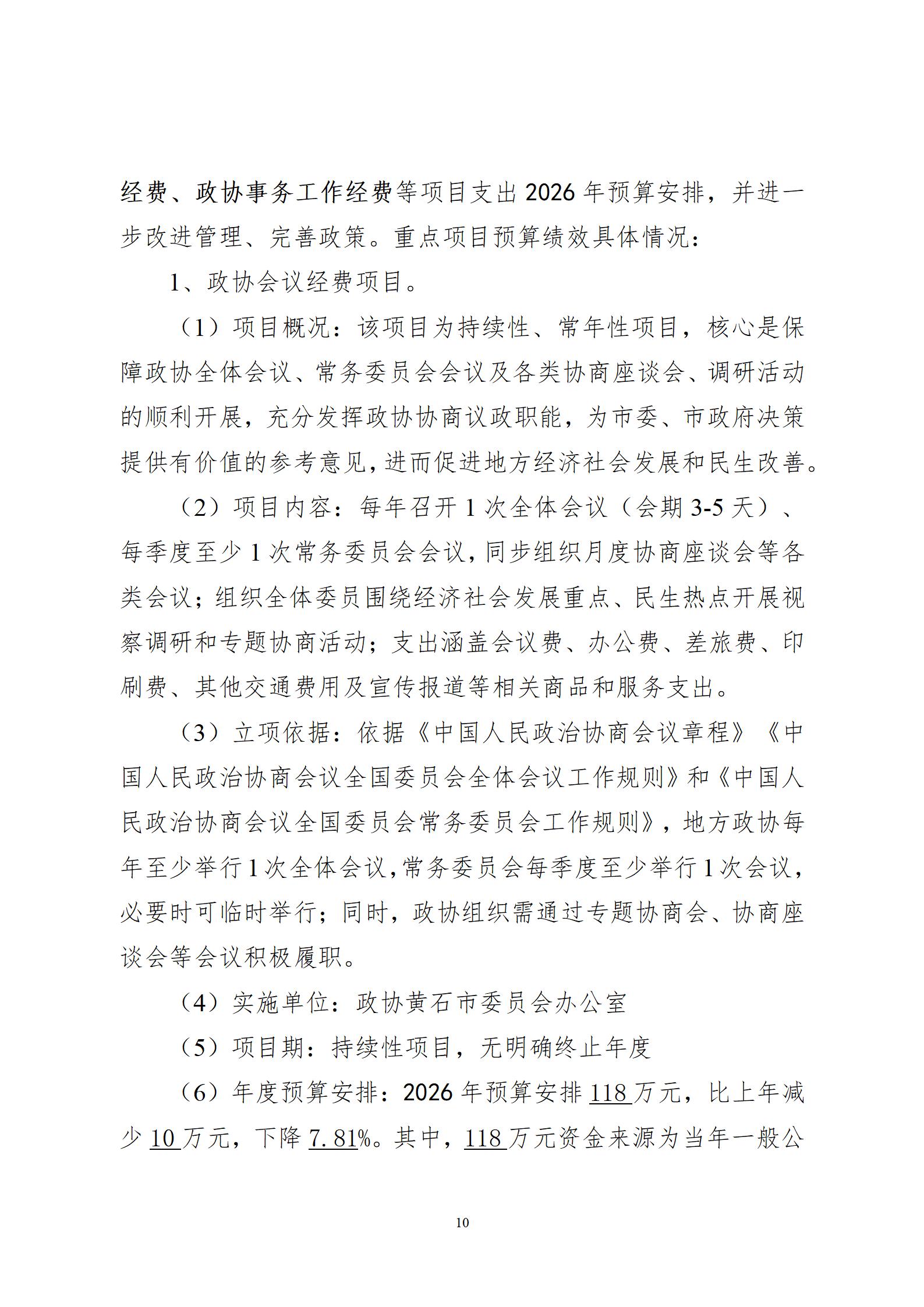 2026年度黄石市政协办公室部门预算公开情况说明