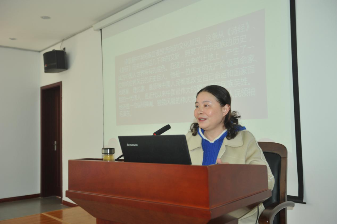 汪岚副主席应邀作了《从毛泽东诗词中汲取奋斗力量》的专题讲座。毛泽东诗词是中华优秀传统文化和中国革命文化、社会主义先进文化孕育出的文化结晶,积淀着中华民族最深层的精神追求,代表着中华民族独特的精神标识。她回顾了毛泽东同志在不同时期写下的光辉诗篇,剖析了毛泽东诗词是对中国革命史的独特记录和对中华诗词的传承弘扬,让大家再次领略了毛泽东诗词的磅礴气势和深远影响。更加深刻地认识到,只有坚持中国共产党的领导,才能实现中华民族的伟大复兴。
