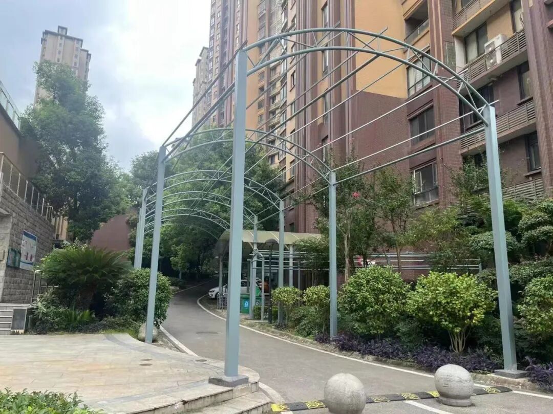今年5月,加建防护棚工程正式开始施工,目前,该工程主体结构已完工,预计在八月份全部完成。